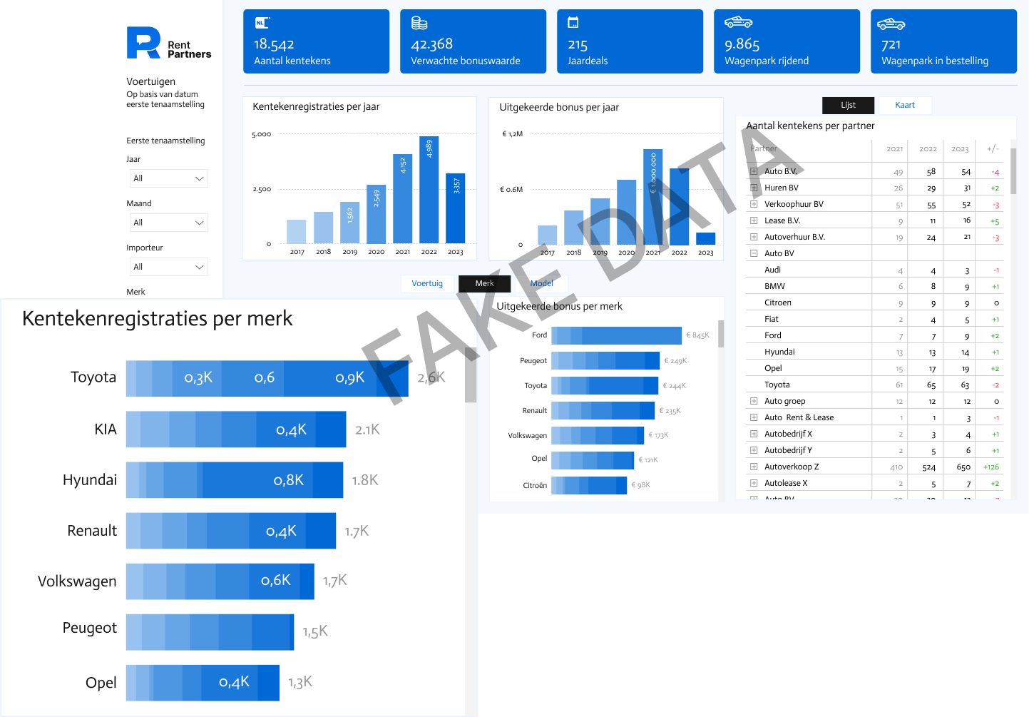 Zo zijn er verschillende dashboards gebouwd die RentPartners inzicht geven, zoals de ’te ontvangen bonussen’. RentPartners heeft verschillende afspraken, waarbij er een bonus verkregen kan worden. Britt: “In het verleden hadden we geen grip op onze bonussen, we deden alles op onderbuikgevoel. Zo hebben we bijvoorbeeld een keer een bonus misgelopen omdat we 99 in plaats van 100 auto’s hadden weggezet. Als we toen het dashboard hadden gehad, was dit nooit gebeurt. We kunnen nu namelijk de gehele periode de resultaten in de gaten houden en waar nodig bijsturen.” Meer inzicht betekent voor RentPartners een betere dienstverlening en scherpere prijzen.